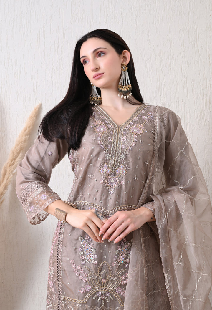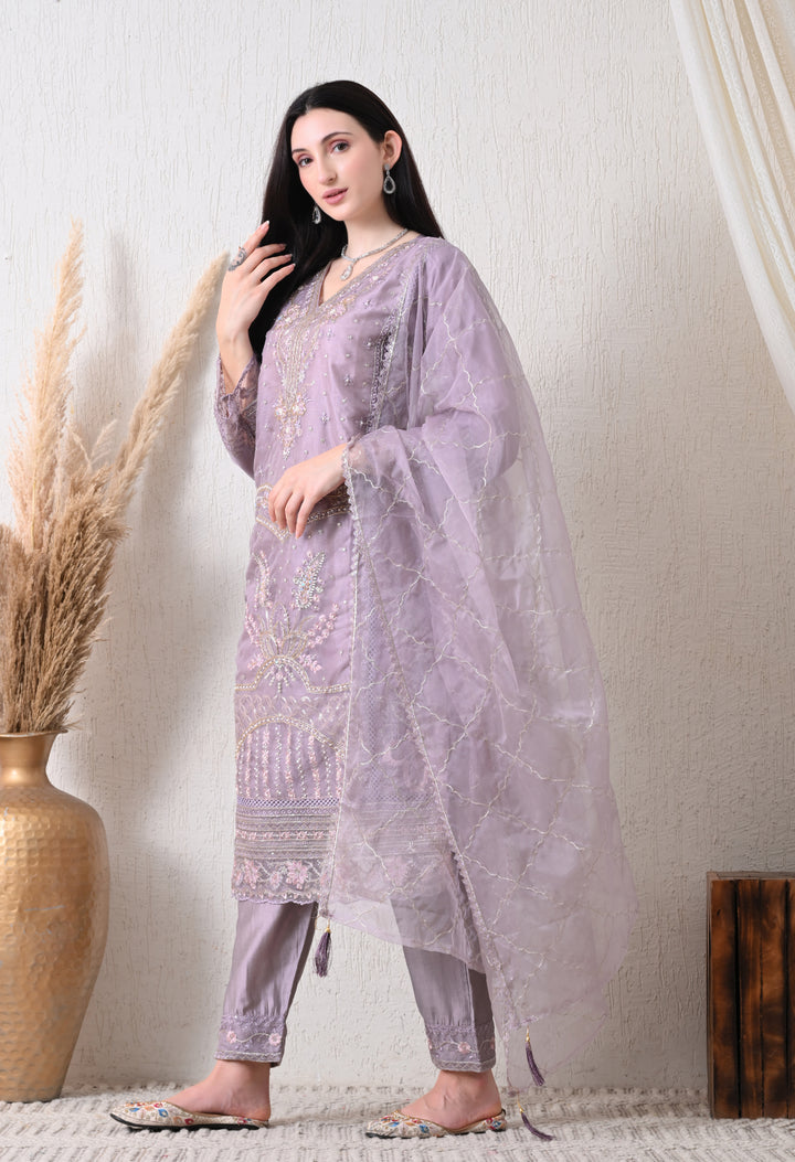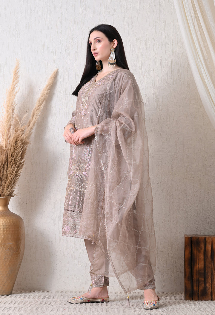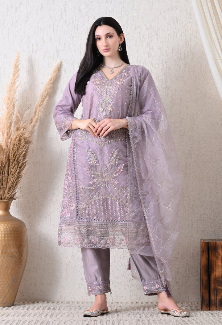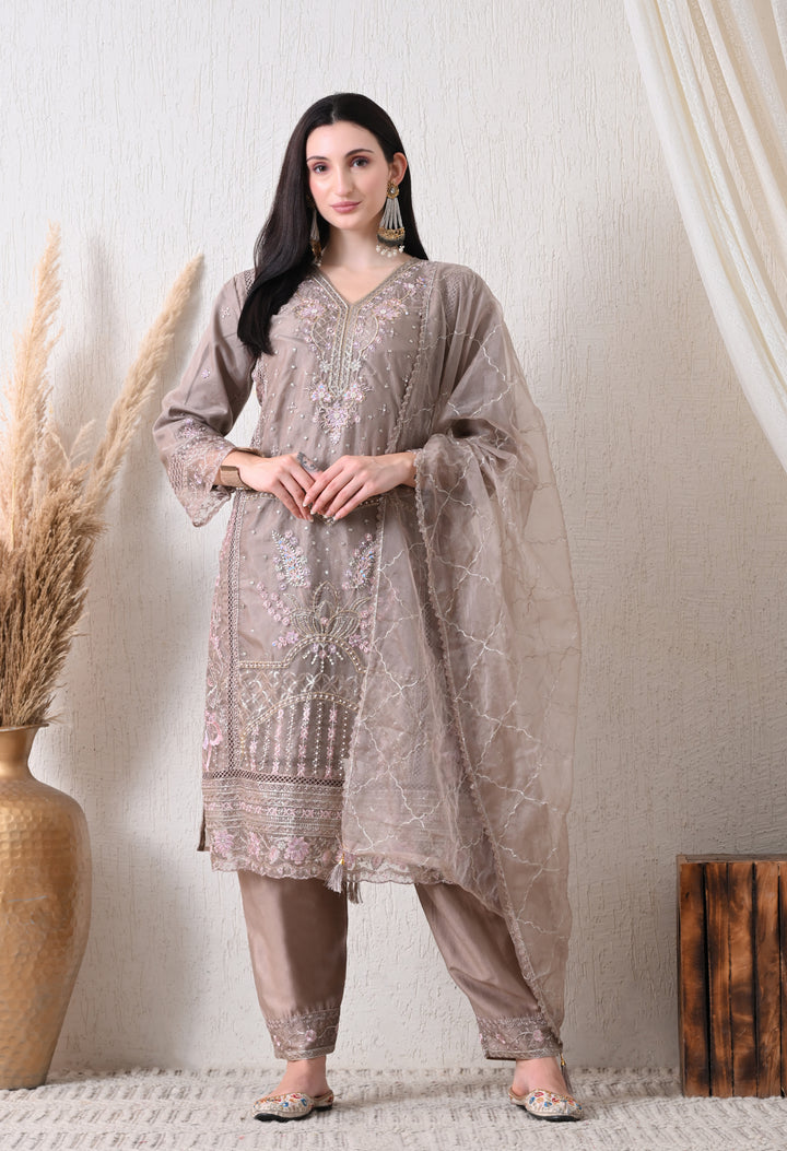 Description:Pakistani style suit Suit with all over Zari work, mirror work, moti work and handwork on the shirt along with pants with hand embroidered bottom of the pant paired with beautiful dupatta with cut work all over it.