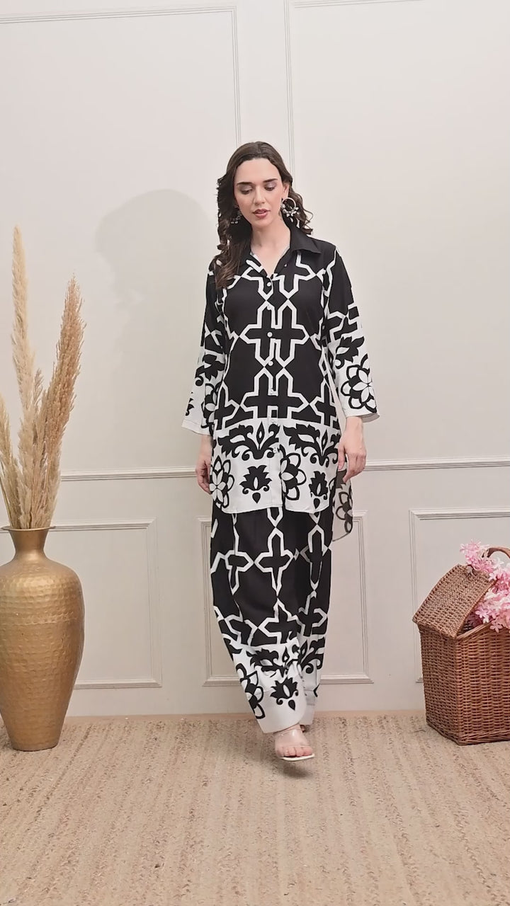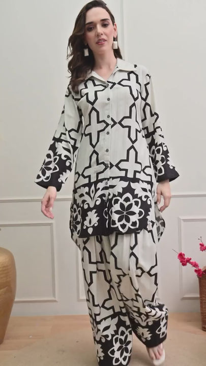 Description:- Shirt with digital printing along with Farshi salwaar with same digital print on it.