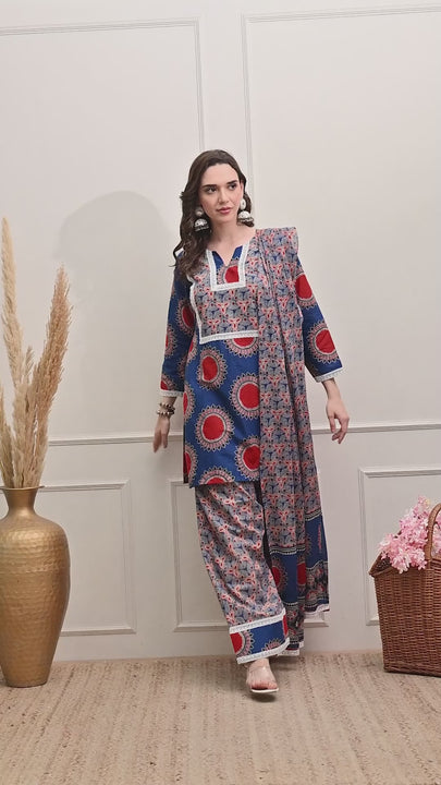 Suit with all over digital print on shirt and farshi salwar with beautiful digital print on dupatta