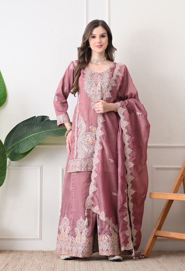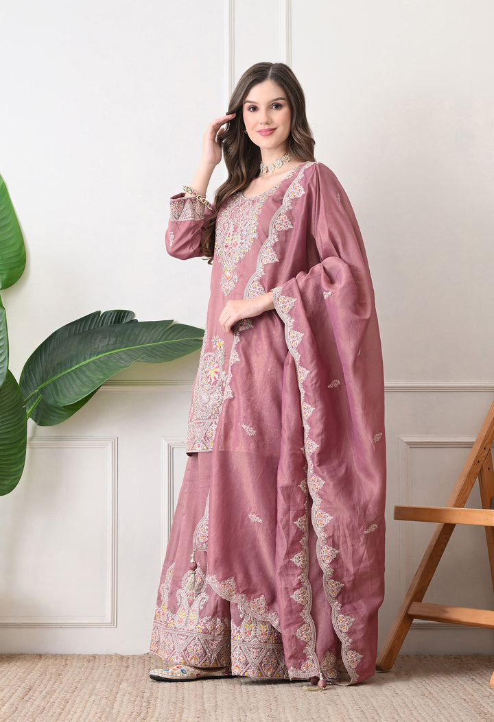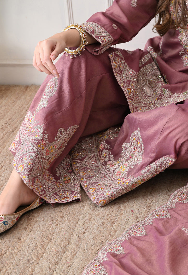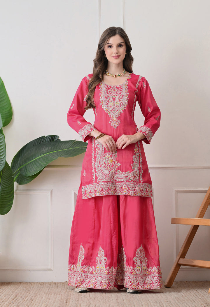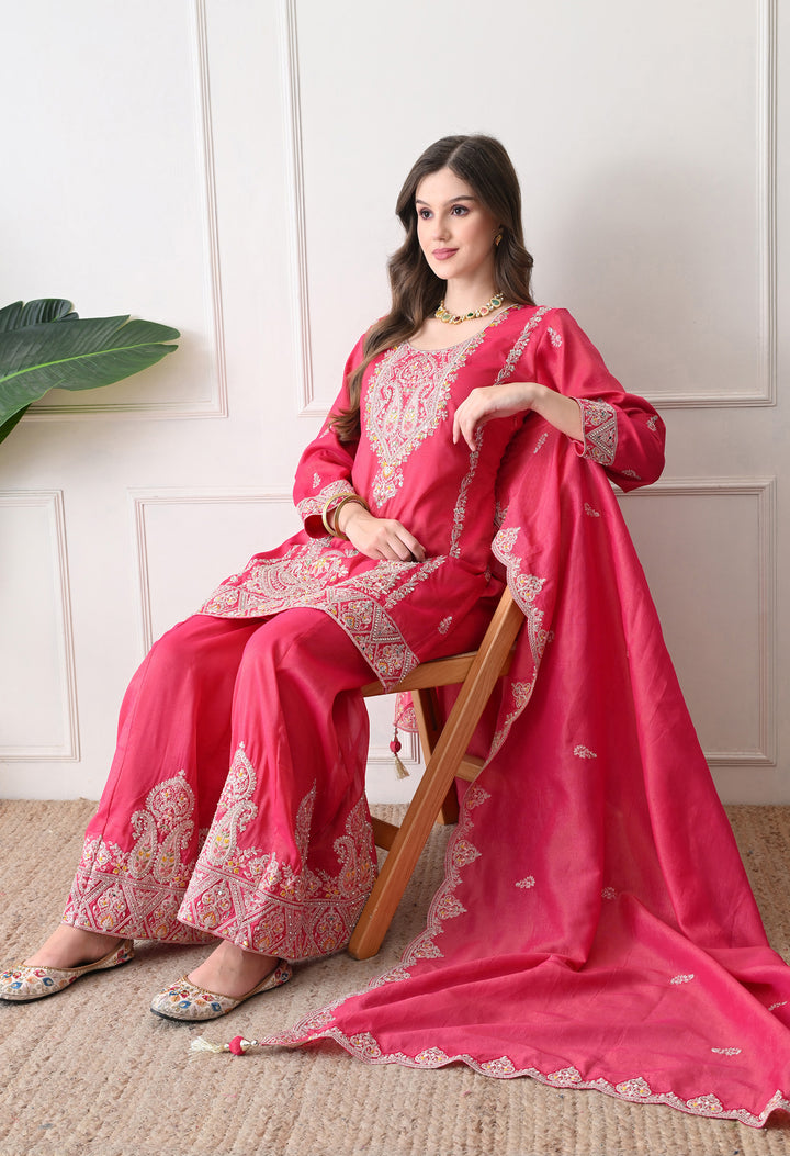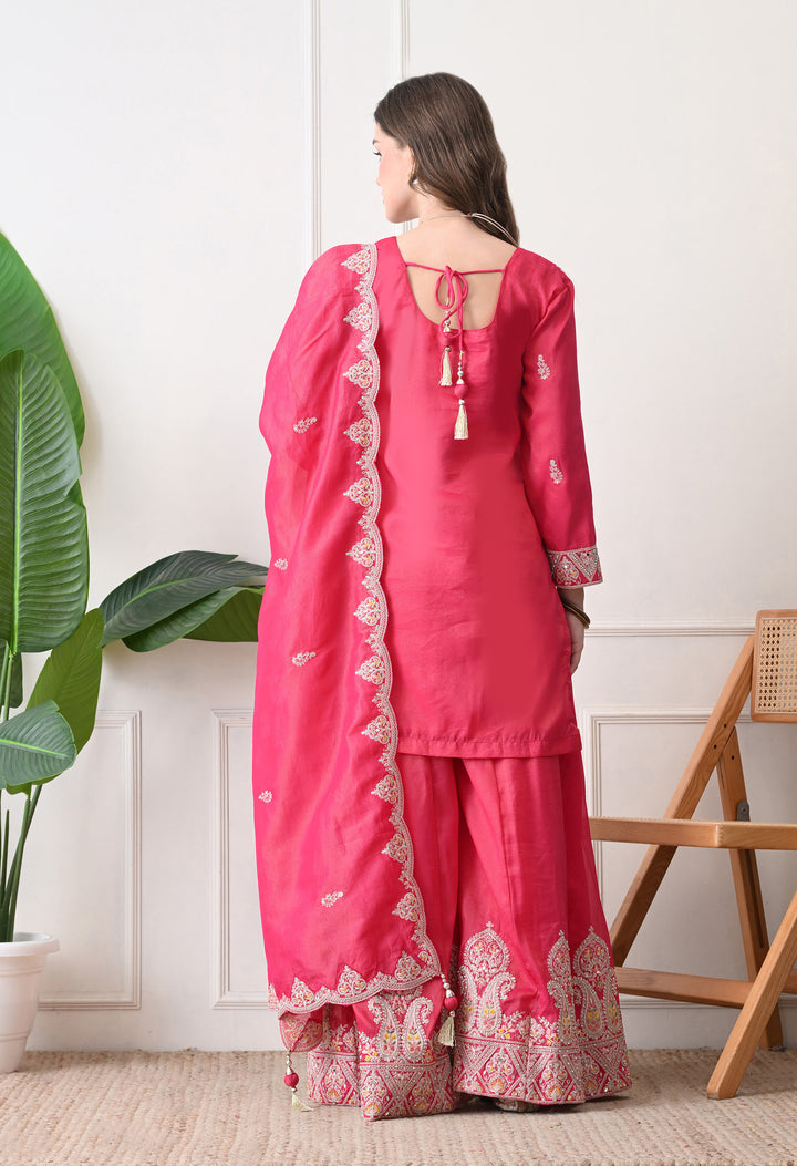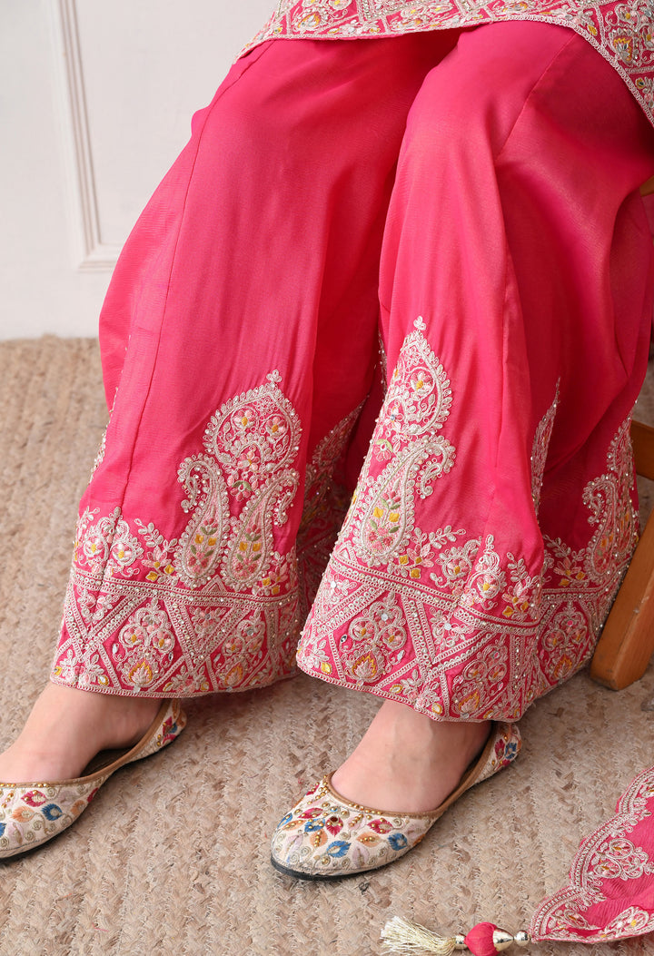 Beautiful Suit with all over zari work, thread work, mirror work, moti work and handwork on the shirt and sharara with beautiful work all over the dupatta