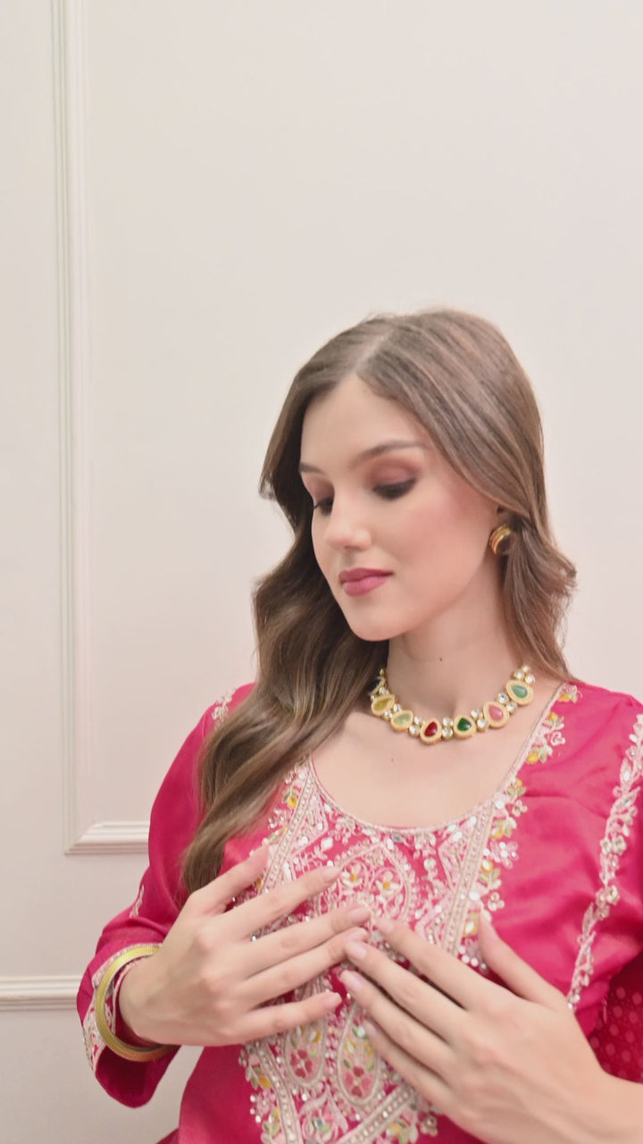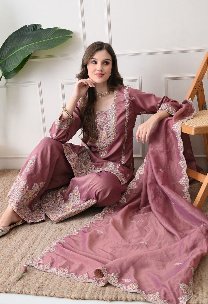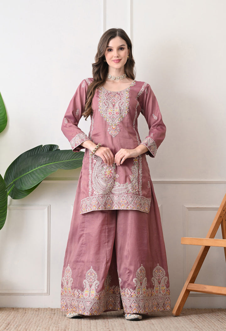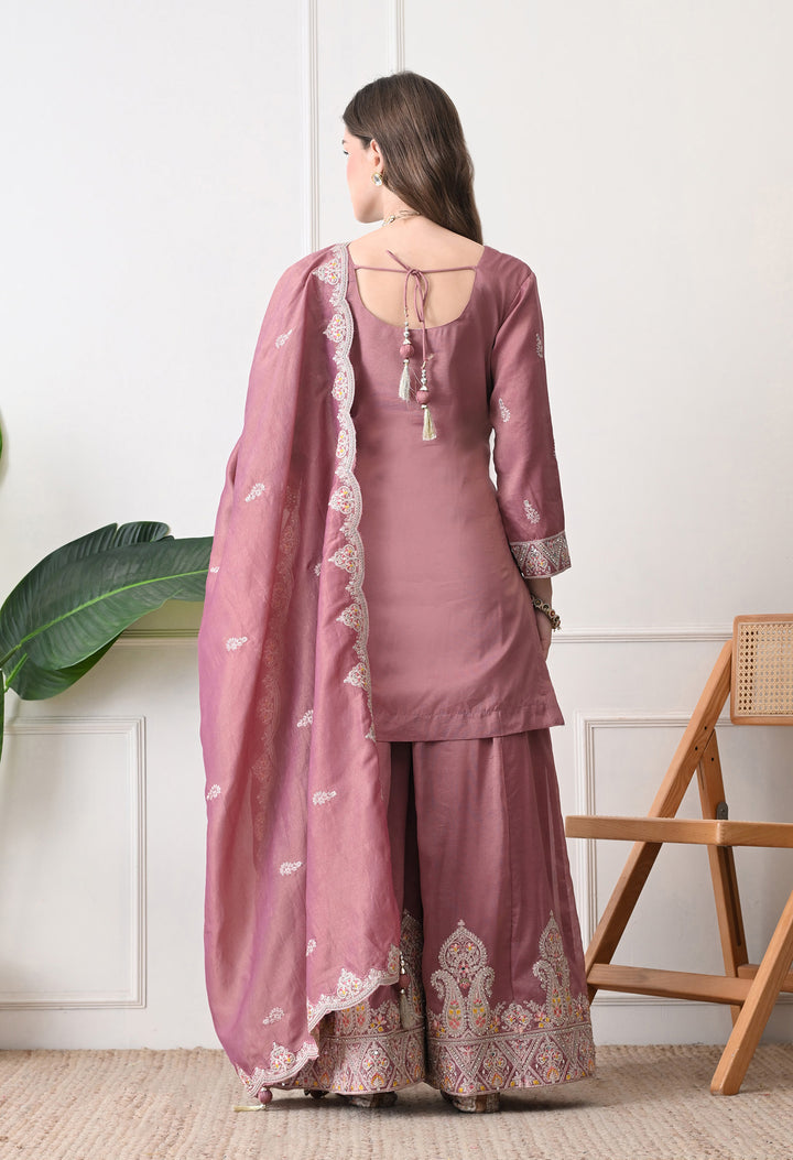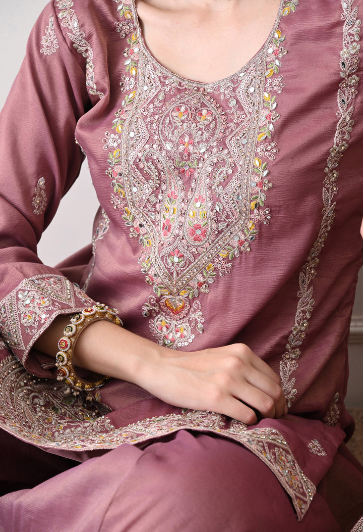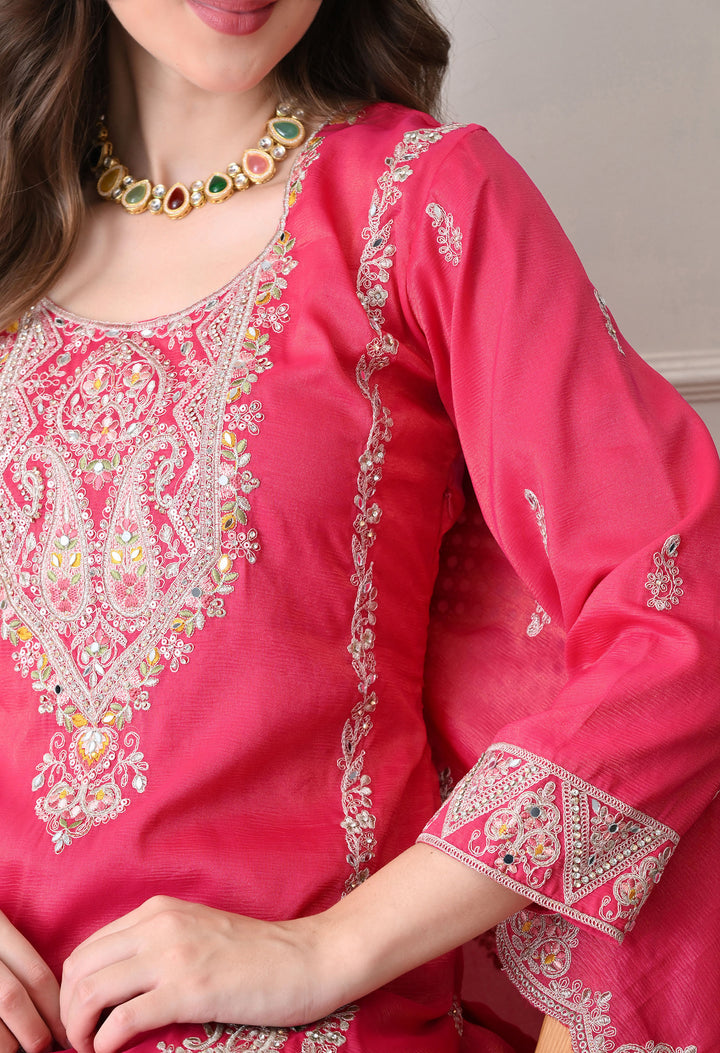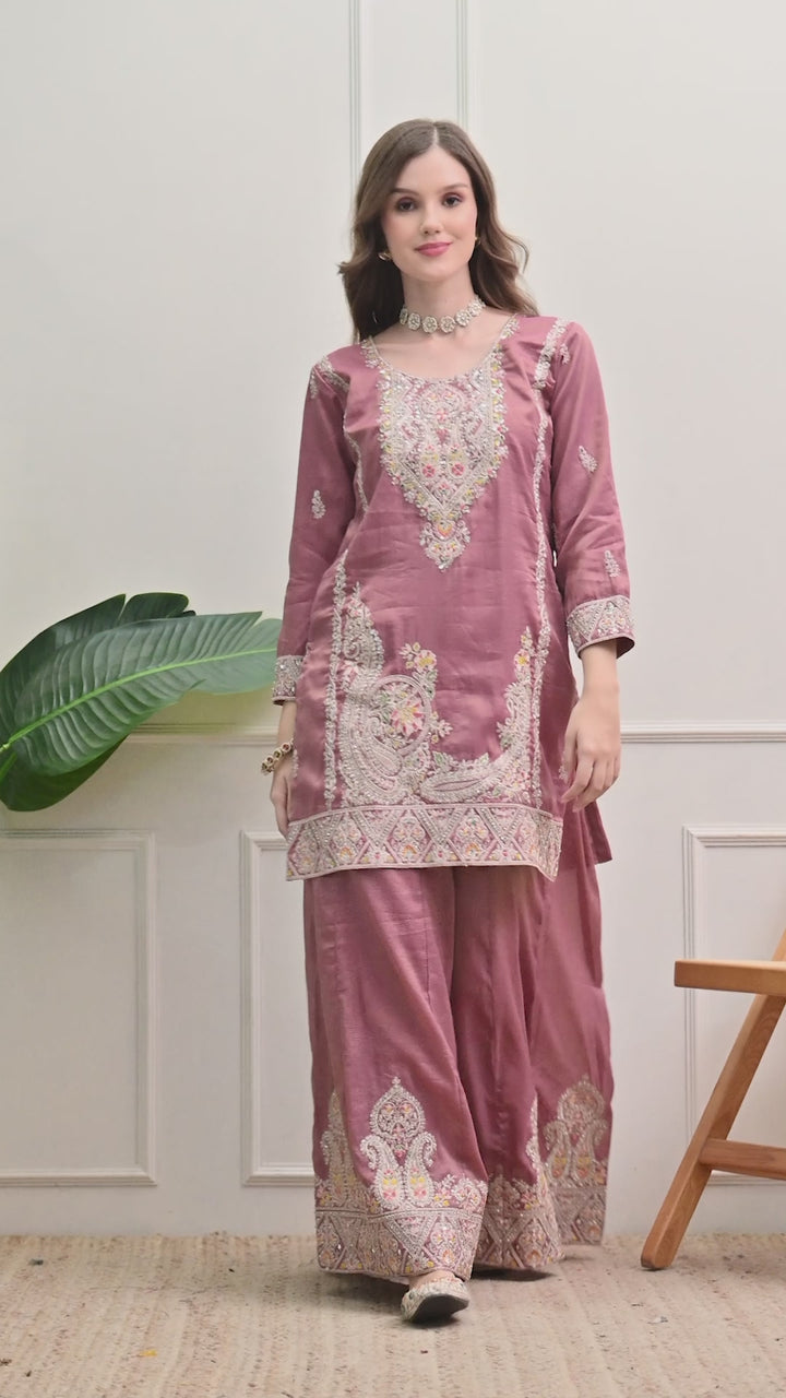 Beautiful Suit with all over zari work, thread work, mirror work, moti work and handwork on the shirt and sharara with beautiful work all over the dupatta