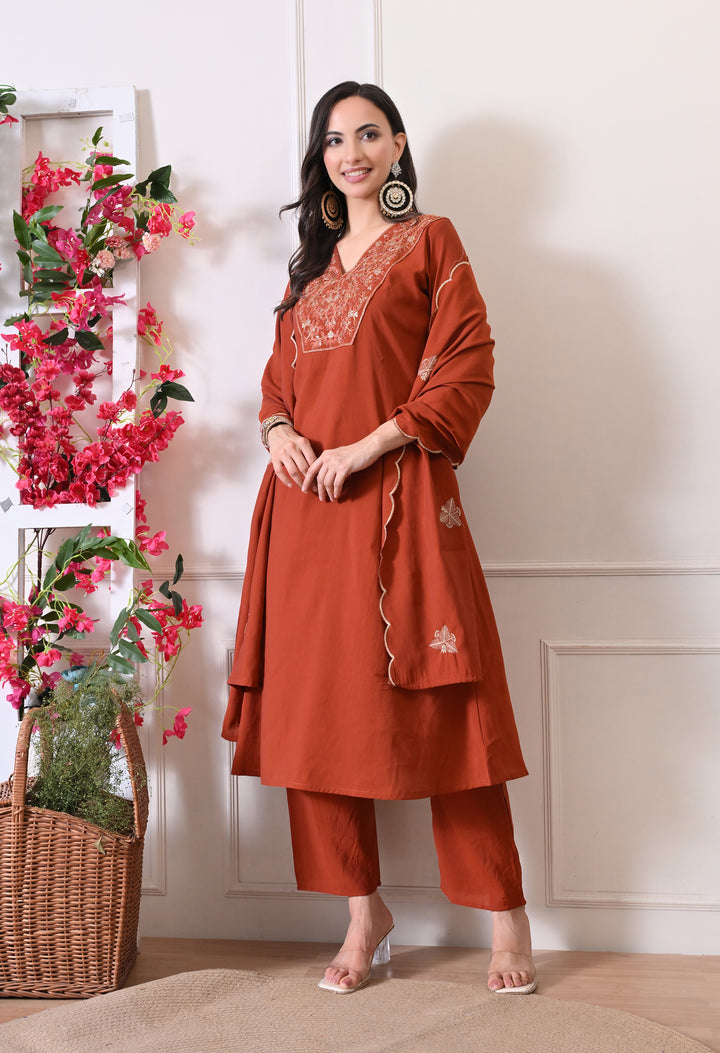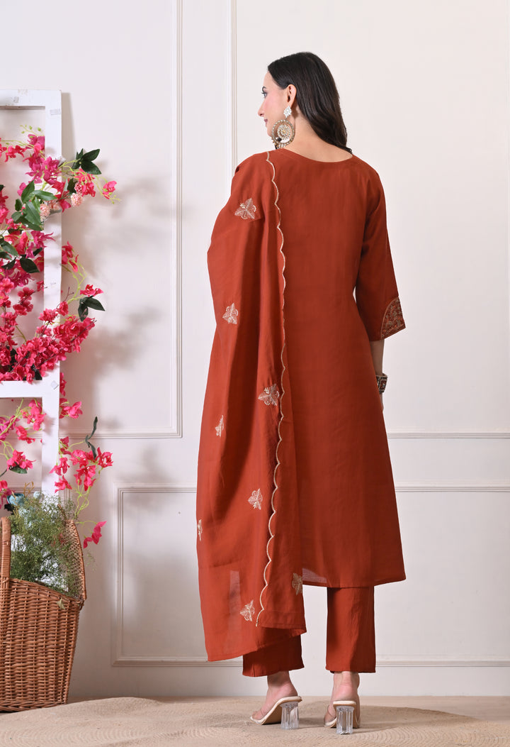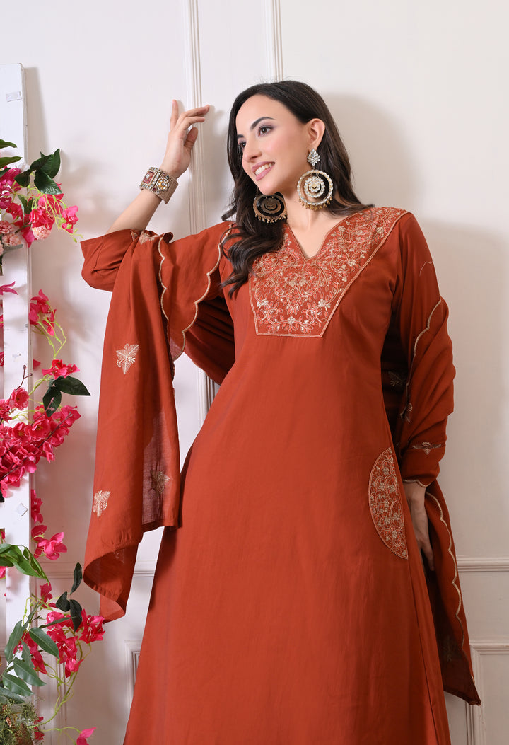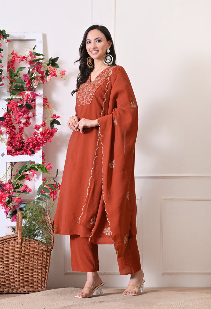 Sunset Rust Suit - Pure Mul Chanderi