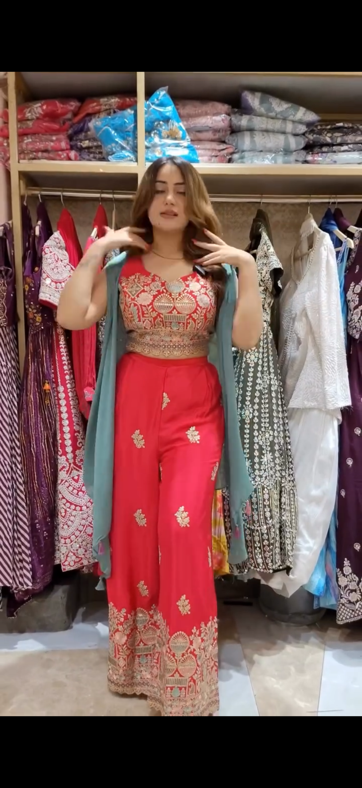 Blouse with full multi , zari and moti work all over the blouse along with multi , zari , and moti work all over the Sharara paired with contrast cape with beautiful tassels